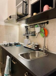 В этой квартире с кондиционером одна спальня оснащена двумя кроватями, гостиная меблирована диваном-кроватью на мраморном плиточном полу. Гости могут приготовить еду на полностью оборудованной мини-кухне с плитой, холодильником, микроволновой печью, электрическим чайником а также средствами для приготовления чая и кофе. Дополнительные удобства включают отопление, гладильные принадлежности с утюгом прилагаются, предоставляются перьевые подушки, постельное бельё и полотенца.