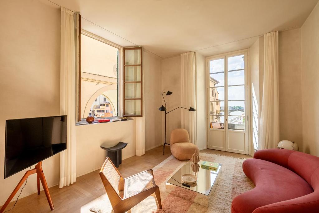 Das Archibusieri 8 Design Home Apartment in Florenz liegt nur 300 Meter von der Piazza della Signoria entfernt und bietet eine einzigartige Kombination aus Komfort und Bequemlichkeit mit kostenlosem WLAN, Klimaanlage sowie Haushaltsausstattung inklusive Geschirrspüler und Kaffeemaschine. Dieses kürzlich renovierte Apartment verfügt über einen großzügigen Raum mit zwei Schlafzimmern und zwei Badezimmern sowie einen Balkon mit Blick auf den Fluss.