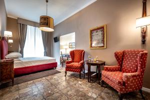 Le camere climatizzate sono dotate di TV a schermo piatto con canali satellitari e bagno privato completo di doccia o vasca, set di cortesia gratuito, bidet, asciugacapelli e pantofole. Ogni camera include un minibar oltre ad angolo cottura per tè e caffè per garantire maggiore comfort. Tra le ulteriori comodità in camera vi sono servizio stireria, cassette di sicurezza, cabine armadio o armadi guardaroba, scrivanie da lavoro e cuscini sintetici anallergici.