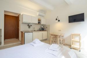 Kawalerka zapewnia wygodne łóżko oraz niezbędne udogodnienia takie jak ogrzewanie, żelazko i szafa. W pełni wyposażony aneks kuchenny zawiera płytę grzejną, mikrofalówkę, czajnik elektryczny, naczynia kuchenne oraz stół jadalny. Prywatna łazienka jest wyposażona w bezpłatne kosmetyki, prysznic, bidet, suszarkę do włosów oraz toaletę.