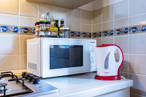 El alojamiento consta de un dormitorio, una sala de estar con sofá cama y un baño equipado con ducha y bidé. La cocina americana completamente equipada incluye horno, placa eléctrica, microondas, frigorífico, utensilios de cocina y mesa para comer que facilitan el autoservicio durante la estancia. Otras comodidades en la habitación son aire acondicionado, calefacción, suelo de madera, armario amplio, toallas y ropa de cama junto con almohadas sintéticas para mayor confort.