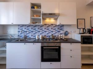 The apartment features two comfortable beds across its two bedrooms along with one private bathroom equipped with shampoo essentials for convenience during your stay. The well-equipped kitchen includes modern appliances such as a stovetop, oven, refrigerator, microwave dishwasher as well as tea and coffee making facilities to prepare meals effortlessly while enjoying heating throughout the space.